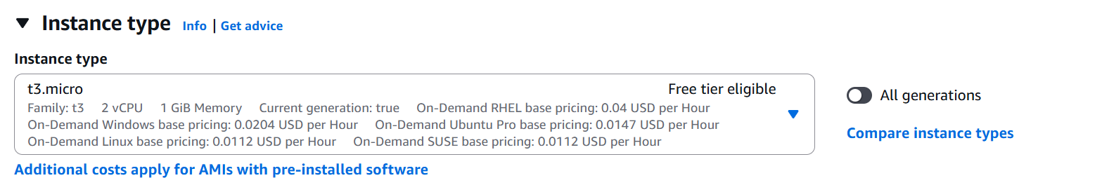 - Select t2.micro (Free Tier eligible).