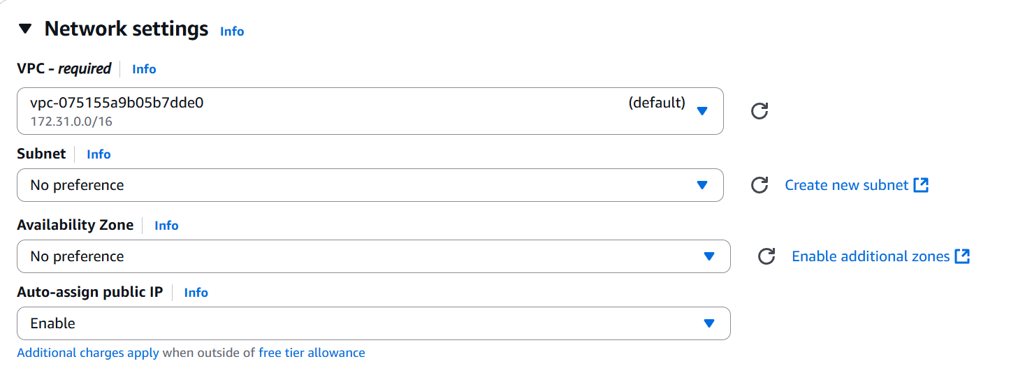 Choose an existing VPC and subnet (or leave default).