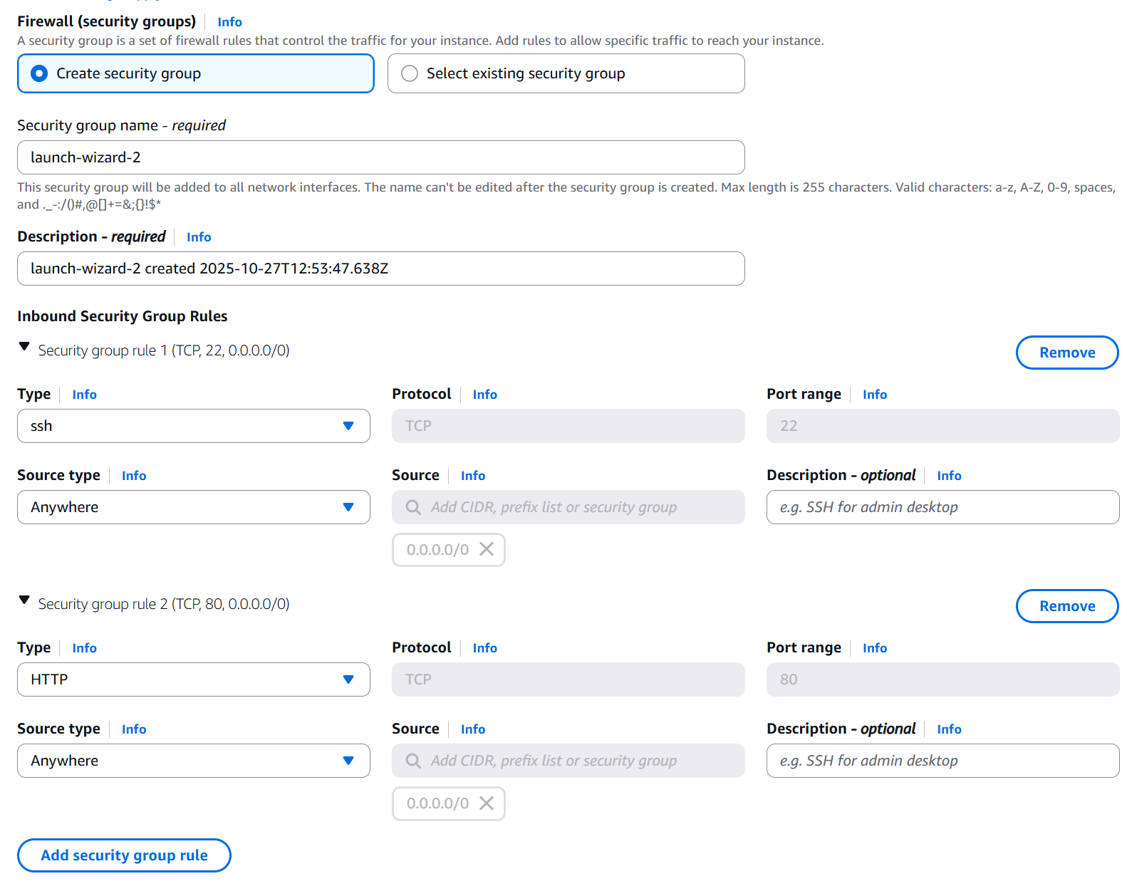 - HTTP (Port 80) from anywhere (