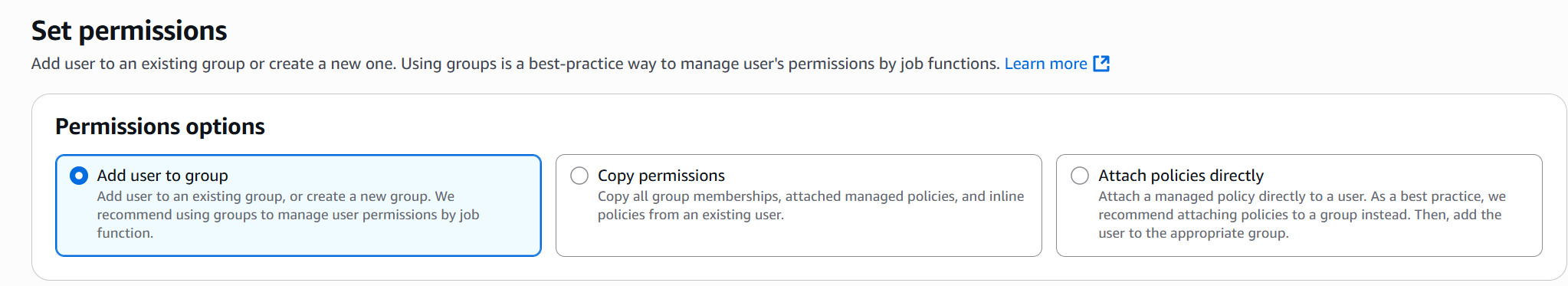 3. Attach policies directly — assign policies manually.